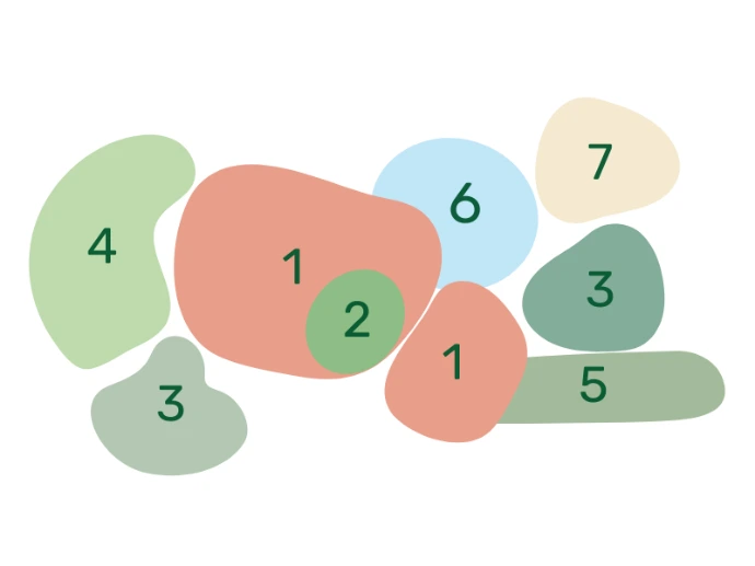 Une scène aux allures champêtres autour du DECOROSIERS® Baïa®, une variété au caractère généreux s'épanouissant dans la légèreté des graminées et l'éclat des feuillages contrastés, pour une scène végétale pleine de vie.