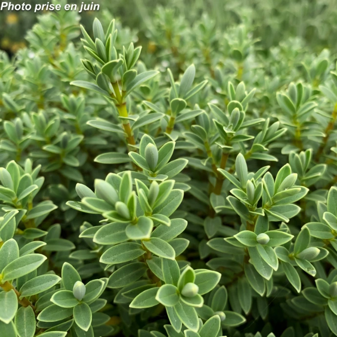 Associé au jaune lumineux du Suneva® le bergenia annoncera les beaux jours avec ses fleurs blanches et dont les feuilles rougiront à l'automne. L’hebe rafraîchit avec son feuillage bleuté et sa floraison blanche en été. Un muelhenbeckia courre en pied de plantation.